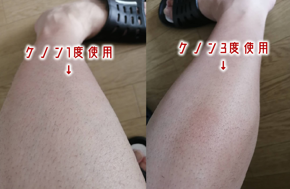 3回目を終えた右足はところどころ毛が生えているものの、明らかにツルツルしている。